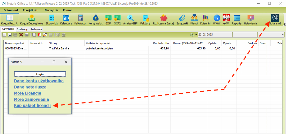 0️⃣ Kup pakiet licencji w menu Notaris AI → Kup pakiet licencji.