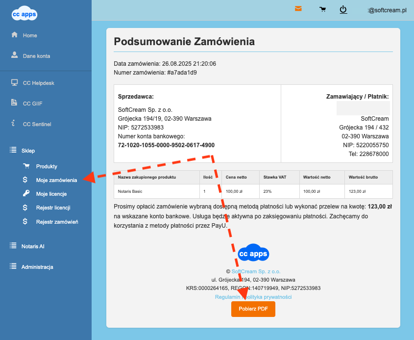6️⃣ Zobacz podsumowanie zamówienia i pobierz dokument w formacie PDF.